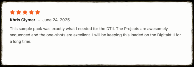 Although the pack is designed for Digitakt 2, you can use the samples in any sampler or DAW of your choice.